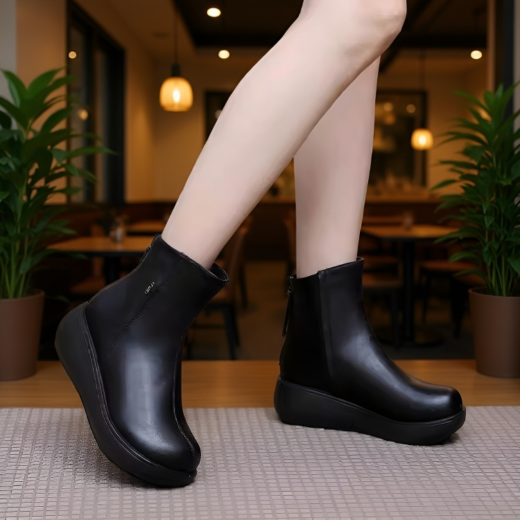 클래식 뒤 지퍼 레더 앵클